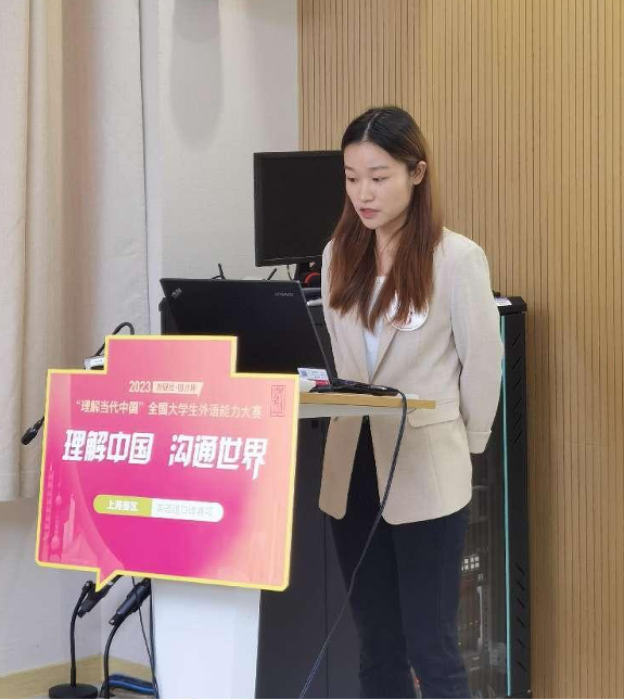 2023年11月11日,由上海市教育委员会指导、上海市大学生英语教学研究会、外语教学与研究出版社协办的2023“外研社·国才杯”“理解当代中国”大学生外语能力大赛英语组口译赛项上海决赛在上海交通大学外国语学院举行。在我院英语系郭靓靓老师的精心指导下,英语系2023级翻译专业英语口译方向研究生解雨点在激烈的角逐中脱颖而出,荣获金奖并成功晋级国赛,储璐依同学也凭借出色的表现荣获银奖,为学校赢得荣誉。