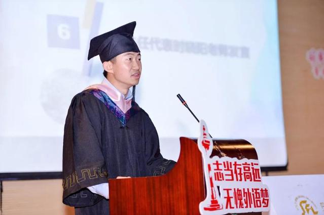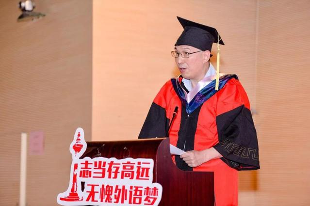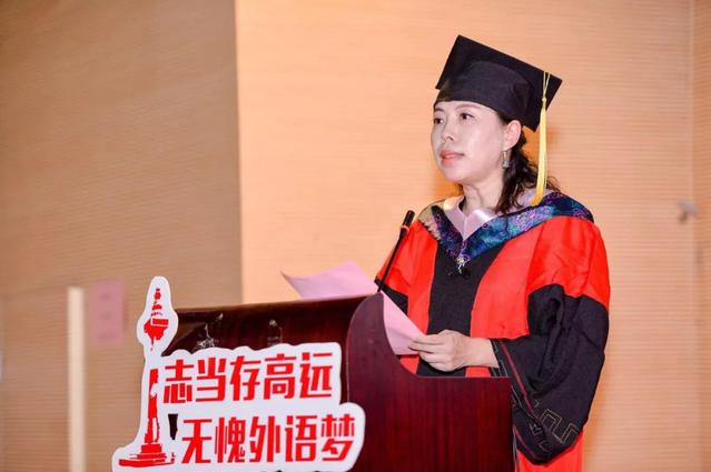 毕业生代表在《我和我的祖国》的壮美旋律中朗诵了《外院青年说》,并宣读了《青春奋斗永不止,毕业建功正当时》倡议书,号召全体2019届毕业生扎根中国,放眼世界,用使命担当和艰苦奋斗书写最美青春华章。