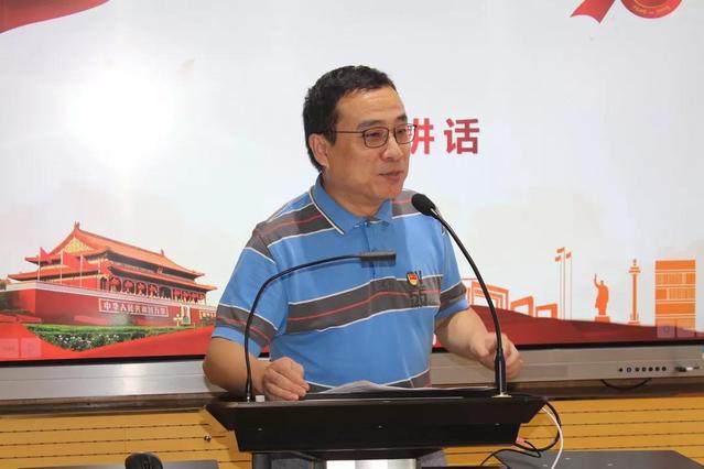 外国语学院党委副书记(主持工作)谭晓赟老师讲话,他对师生们敏锐的观察、自信的表达和充沛的才情表示肯定,以一代代同济人报效祖国、把论文写在祖国大地上的事迹,鼓励青年学子不忘初心,心怀理想,牢记使命,担当大任,知行合一,服务祖国和人民,以青春之奋斗献礼新中国70周年华诞!