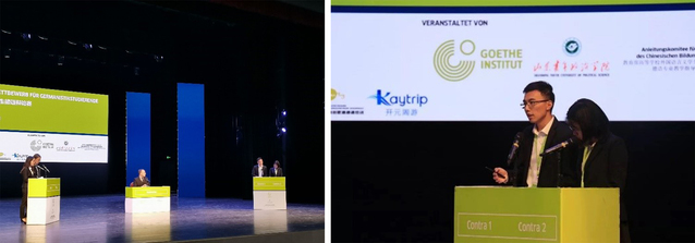 经过第一天的初赛,和第二天的八分之一、四分之一、半决赛的层层过关斩将,我校2016级德语本科生张嘉豪、王心怡所组成的同济大学代表队在指导老师Annika Heinrich的带领下闯入决赛,对战北京大学代表队,并最终斩获亚军。两位同学将获得由DAAD德意志学术交流中心资助的奖学金,于明年夏天在德国大学进行为期一个月的学习交流。