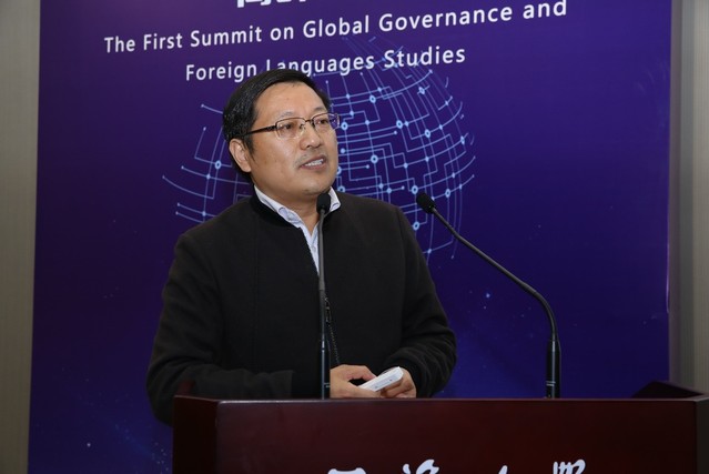 上海外国语大学党委书记姜锋教授以《世界一流外国语大学发展战略》为题,重点从交际能力,知识能力,学理能力三个方面阐述了全球话语能力建设与大学责任,并介绍了上海外国语大学的实践理念与效果,包括“国别区域全球知识”、“会语言,通国家,精领域”、“多语种+”“+多语种”、“国际问题与国际舆情资政服务”、“观察世界风云,贡献国别区域知识”和“讲述中国故事,分享中国智慧与中国方案”。