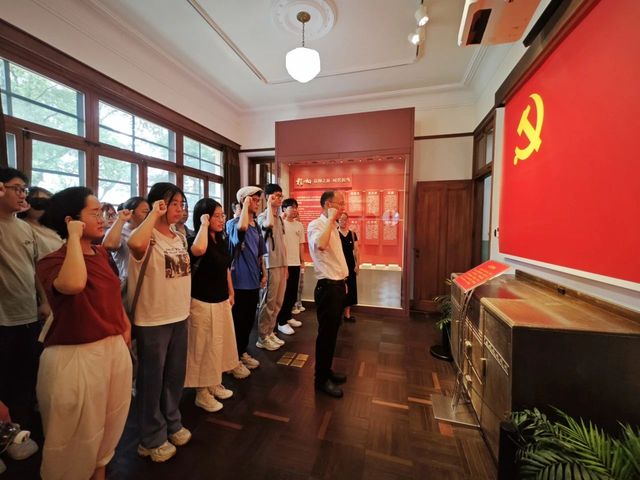 党旗飘扬,铭记历史。在陈望道故居的党旗前,外国语学院师生党员庄严宣誓,深切缅怀革命先烈的崇高精神,表达对党忠诚的决心。历史与现实交融,初心与使命交汇。我们将牢牢恪守在党旗下的誓言,与党同心同德、与时代发展同向同行,奋发有为,在新时代建功立业。