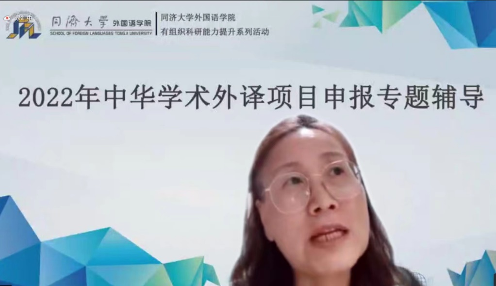 基于学院开展“有组织科研”的计划安排,学院于2022年9月22日邀请了华东理工大学外国语学院吴碧宇教授和我院陈琳教授进行“2022年中华学术外译项目申报专题辅导”的在线学术讲座,讲座由沈骑副院长主持,全院近五十位教师参加了交流。