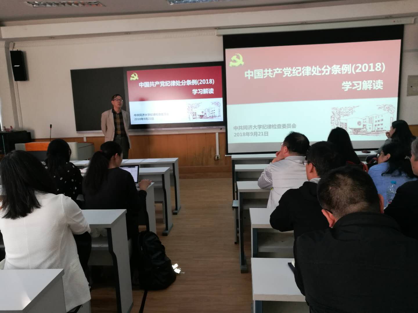 10月16日周二下午,外国语学院在汇文楼218召开全体教工党员大会,集中学习了同济大学第十一次党代会报告和《中国共产党纪律处分条例》。