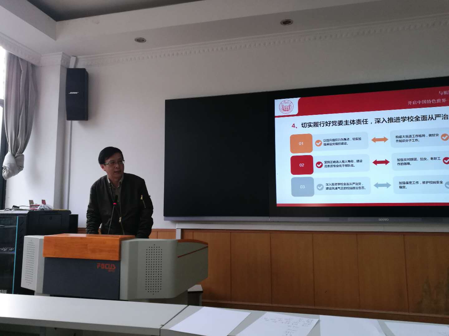 外国语学院党委书记李立贵同志主持大会并带领全体教工党员学习了同济大学第十一次党代会报告,首先简要介绍了大会召开的背景、主题、成果及意义,又从过去五年的主要工作、坚定中国特色世界一流大学建设目标、切实推进未来五年学校建设与改革发展、开创学校党的建设新局面四个方面详细解读了大会党委报告,使全体教工党员对学校第十一次党代会有了更深入的了解,对学校过去五年的工作和未来的建设目标有了更加直观的了解。