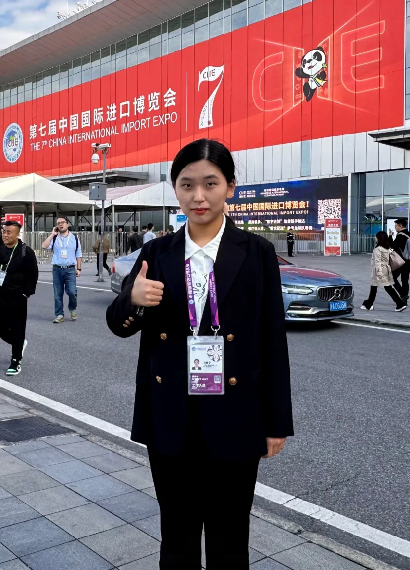 2024年11月5日,在上海市举行的中国国际进口博览会上,我有幸作为中日双语翻译的一员积极参与其中,这不仅是对个人能力的一次重要检验,也充分展现了同济外语学子的国际视野和专业语言能力。在三菱综合材料等展台,我向听众们提供了精准而生动的产品介绍翻译;除使用日语进行交流外,我还用英语协助白俄罗斯参展人员,带领他们顺利抵达目标展台。虽然我的个人实践范围有限,但每一次对话都是跨文化交流的火花,不仅语言技能得到锻炼,同时加深了对多元文化的理解。