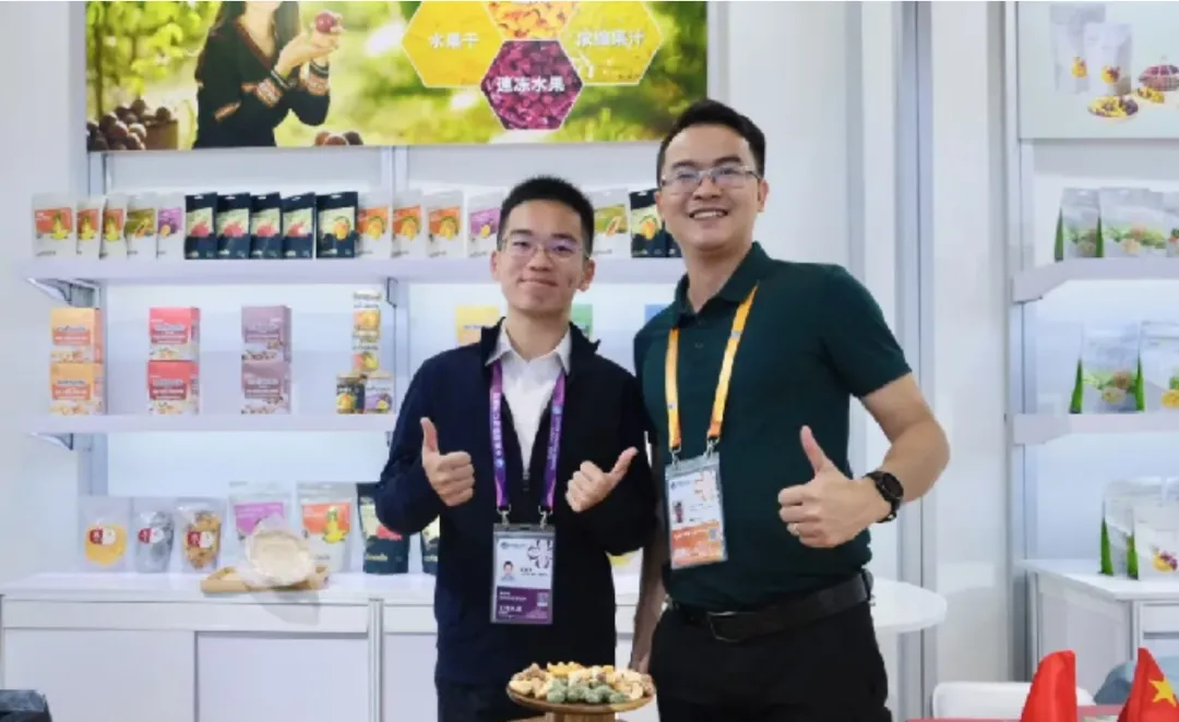 我院赵俊杰同学参与翻译服务的企业是来自越南的Nafoods集团,主营产品包括鲜果榴莲、各类水果的果干和冻干、各类水果的果泥和浓缩果汁、各式风味的腰果零食等。其产品已销往包括美国在内的七十多个国家和地区,为消费者提供质量上乘的商品。Nafoods集团的榴莲鲜果、果泥和浓缩果汁等产品此前已进入中国市场,今年是Nafoods集团第二次参加进博会,主要商业目标是寻找国内对其腰果制品、水果果干和冻干产品有兴趣的经销商,帮助其产品进入中国市场。通过帮助展商与来自全国各地的数十名企业代表沟通交流,促成了众多合作意向的达成。11月7日的下午,沃尔玛中国直接进口部门的工作人员来到了展台前,对Nafoods集团的产品表示了浓厚的兴趣,展商成功与沃尔玛中国建立了联系。作为翻译我亲历了双方合作之旅的第一步,见证了进博会给外国企业带来的宝贵发展机遇,领会了中国作为一个负责任的大国,在推动区域共同繁荣发展中所发挥的关键作用。