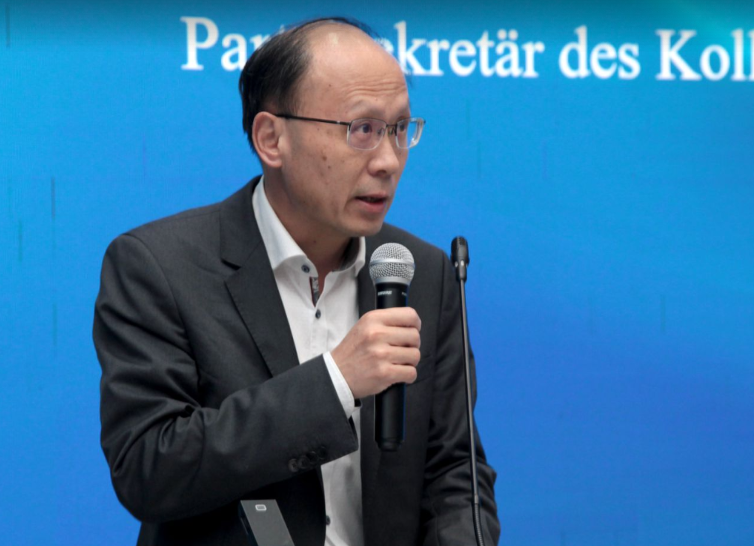 教育部首批虚拟教研室“德语本科专业教研室”负责人、同济大学赵劲教授随后致辞。她强调,在数字化、网络化和智能化快速发展的时代,新兴技术正不断渗透到教育领域。作为新时代大学生,主动体验教育新场景,将不仅是一个学习的过程,更是思考教育新问题,构想教育新图景的重要机会。她希望同学们在这过程中培养合理利用新技术的能力,锻炼创新思维和批判思维,并树立在技术发展中应有的主导和责任意识。最后她期待选手们借助“德语之星”平台互相交流学习,为推进中国式现代化和科技创新贡献新力量。