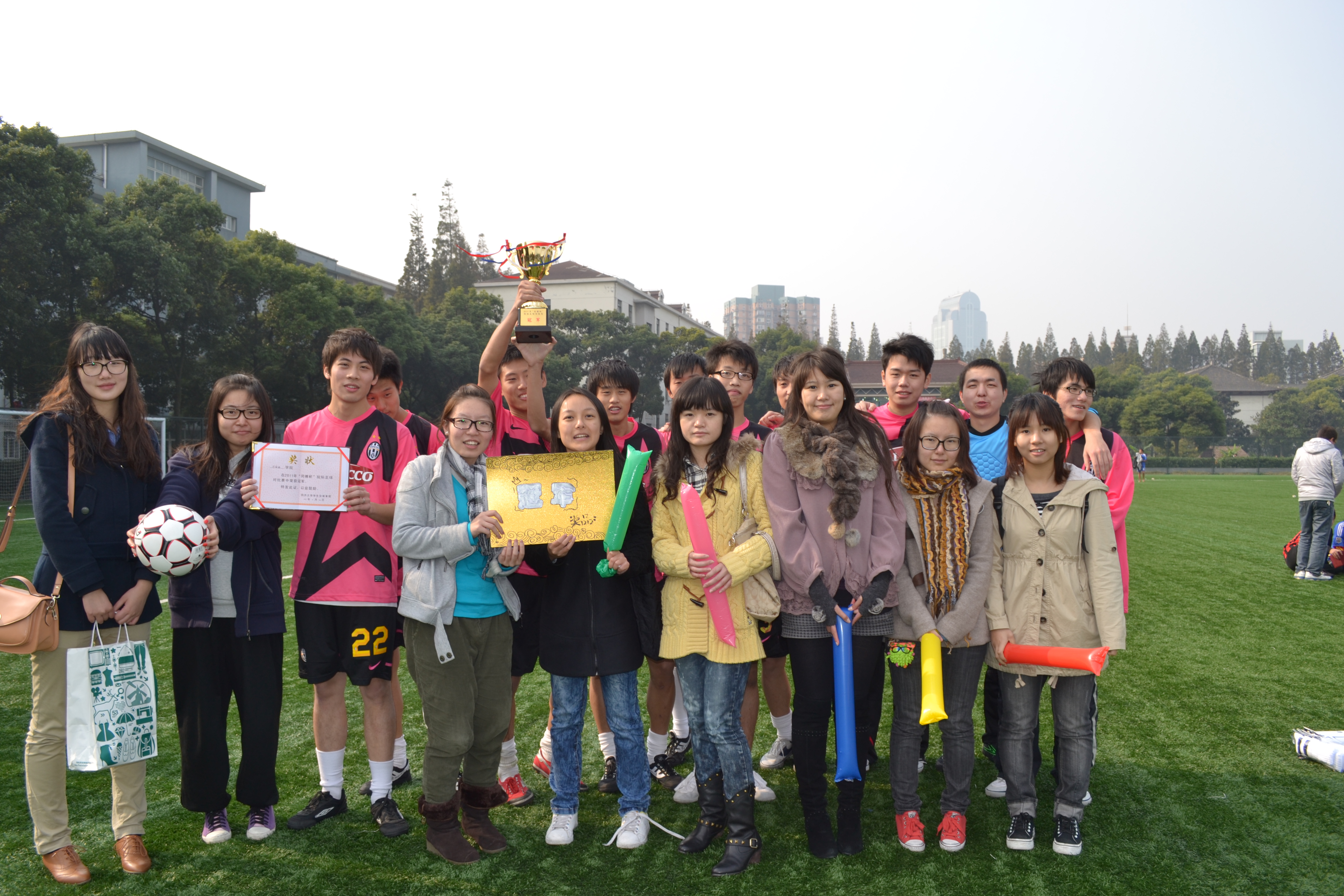 在此,我们对足球队的所有队员表示衷心感谢!感谢他们为外院赢得了首个校际足球赛的总冠军。他们是:王卓、耶尔博、曲彦铭、王维爵、何毅恒、许艺萧、祝斌涵、梁焱鑫、孙宜中、王凌霄。