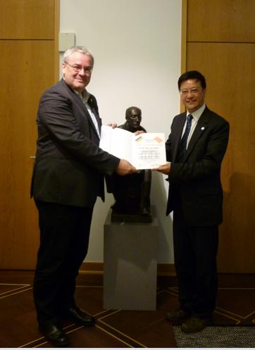 李书记此次访问的主要目的之一是接受科隆大学校长任命其为科隆大学中国特使的聘书。科隆大学历史上还是第一次由一名非科隆大学教授担任此项工作。这既体现了科隆大学致力于发展与中国高校和科研机构合作和交流的积极姿态,也表达了对同济大学的友好,以及对李立贵多年来热衷于中德教育交流与合作的一种肯定。