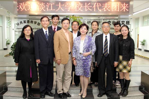 2012年10月21日下午,台湾淡江大学校长张家宜教授,国际事务副校长戴万钦教授,前学术副校长航太系冯朝刚教授访问了同济大学外国语学院。李立贵书记,董秀副院长,英语系负责人魏耀章,副主任吕佩爱及教务科秦双华等相关老师在学院新楼欢迎代表团的到来,进行了会谈,双方就学生交流、教师交流,联合科研达成了初步合作意向,校港澳台办潘慧斌主任及陶敏霞老师也陪同参与了会谈。淡江大学此次来访与同济大学签署了校级合作协议及学生交换项目协议。我外国语学院初定将于明年9月开始与对方外语学院互派本科生。会谈后代表团还参观了外国语学院的教室及办公室。
