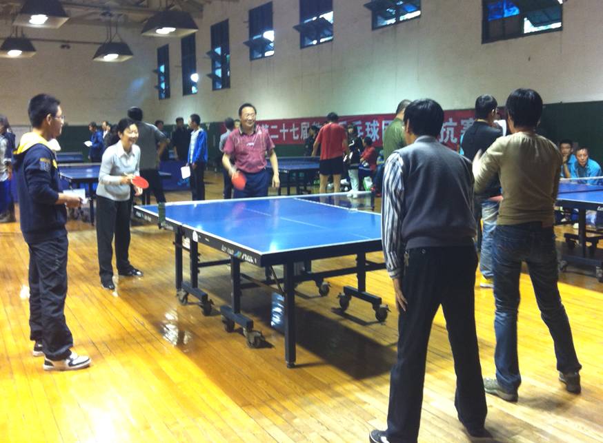 11月6日下午,同济大学第27届教工乒乓球比赛鸣锣开战,赛事吸引了各学院、单位共26支队伍参数,人数近300人。我院部门工会在赛前积极动员、组建队伍、认真备战,在小组循环赛中,队员老师们面对强劲对手,沉着应对、奋勇拼搏,展现了外国语学院积极向上的拼搏精神和良好的比赛状态,最终进军八强。(在与汽车学院的比赛中)(我院乒乓球队队员集体合影)