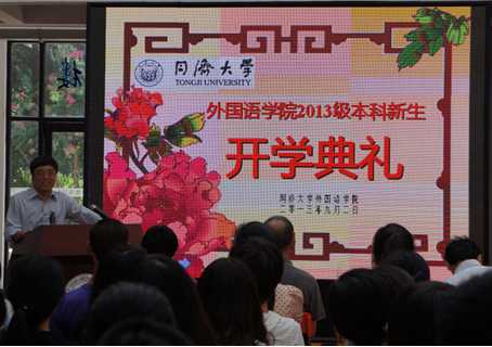 我院2013级本科生新生开学典礼于9月2日在同文楼大厅隆重举行。外国语学院院长马秋武、副院长李杨、以及英语、德语、日语系负责人、新生班主任、学工办辅导员和全体2013级本科新生出席了开学典礼。本次开学典礼由外国语学院党委副书记花艳老师主持。