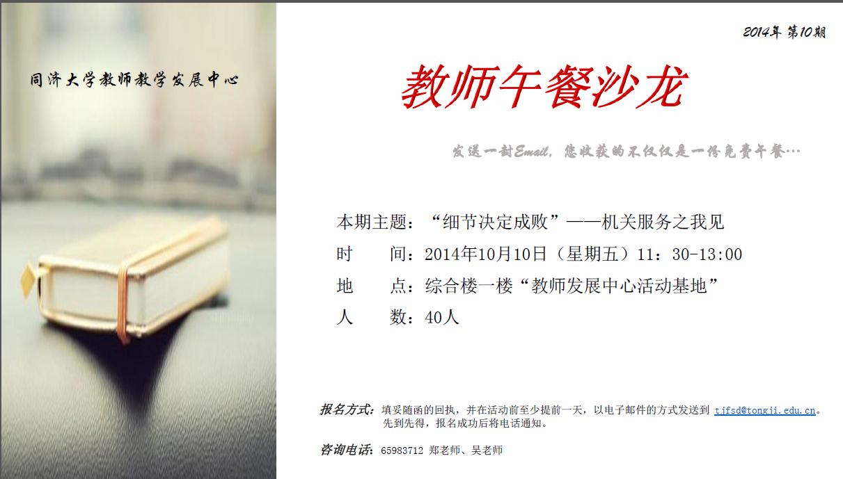 【转教师发展中心】10月10日午餐沙龙邀请通知