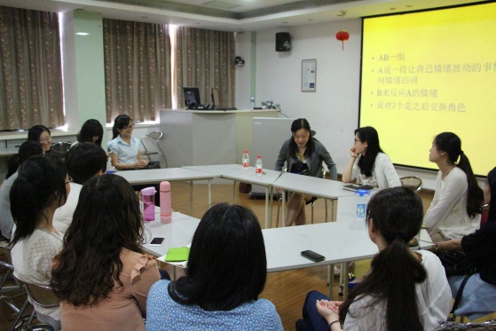 理论要应用与实践,在随后的实践环节中,姚老师将同学们进行分组,要求在座的每位同学向自己的搭档描述一次情绪波动的事件,但是描述过程中不能使用情绪化的语言,然后由搭档来猜测自己当时的情绪状况,并分析在该实践中情绪的变化及其原因。同学们在描述和分析的过程中,对自己和他人的情绪变化都有了更深的体会,明白了为什么在情绪事件中对方会有这样的反应和动作,对对方的情绪反应有了更好的理解,也慢慢开始领悟出人际关系中的沟通与应对技巧。
