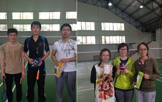 此次比赛以男单及女单的形式进行,现场抽签组队,比赛规则为三局两胜淘汰制,严格遵循国际羽毛球比赛规则。最终,土木工程学院的罗晨皓同学一路技压群雄,斩获男单冠军,来自我院德研所的王鹏获得亚军,土木地下系的文思成获得季军。水利工程系的王佳元同学巾帼不让须眉,斩获女单冠军,来自企业管理的王宏晴以及水利工程的顾诗意同学分获亚军和季军。