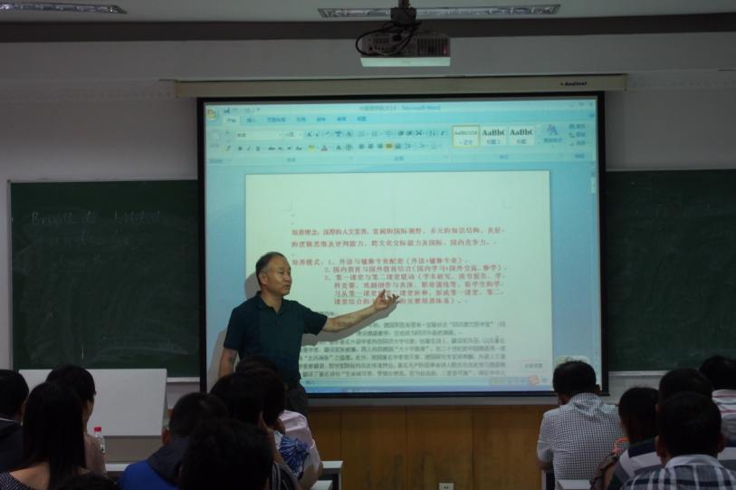 9月6日上午,外国语学院新生家长见面会在汇文楼218举行,共有80余名新生家长参加了家长见面会,外国语学院党委书记李立贵、副院长李杨、党委副书记花艳,以及各系负责人、辅导员老师参加了新生见面会。