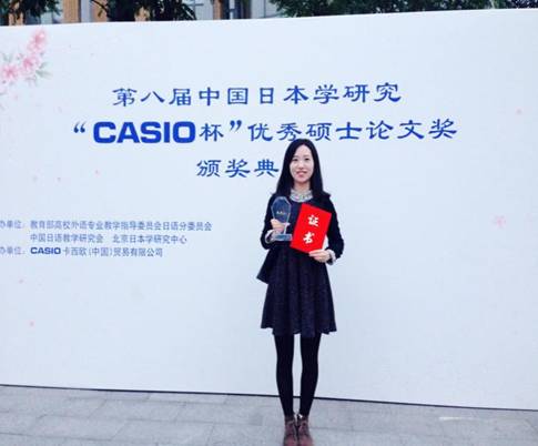 2015年10月24日,第八届“卡西欧杯”中国日本学研究优秀硕士论文奖的颁奖典礼在北京外国语大学隆重召开。由我院日语系魏铀原副教授指导的2012级硕士生任希同学的毕业论文《远藤周作的宗教观――从<深河>中的“转世”说起》荣获文学组三等奖。
