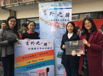 言外之“驿”是由外国语学院研究生党支部发起的社区党建项目,旨在在学生社区内打造外语文化体验站,结合语言文化、历史政治、异域风情等因素,以贴近学生生活的方式,在社区内开展外语文化体验活动,使参与者切身感受到文化交融的魅力,并为学生提供外语文化展示平台,综合提升学生对于跨文化能力及国际化能力的学习热情。主要内容包括:济外影苑――定期在社区播送各类外国文化大片;Talk Show---每期选定国内外相关热点话题,与大家共同探讨;外语角---涵盖英语、德语、日语,为社区外语爱好者提供很好的练习平台与机会;英语帮帮箱――为社区同学提供英文简历及摘要翻译纠错服务等系列活动。