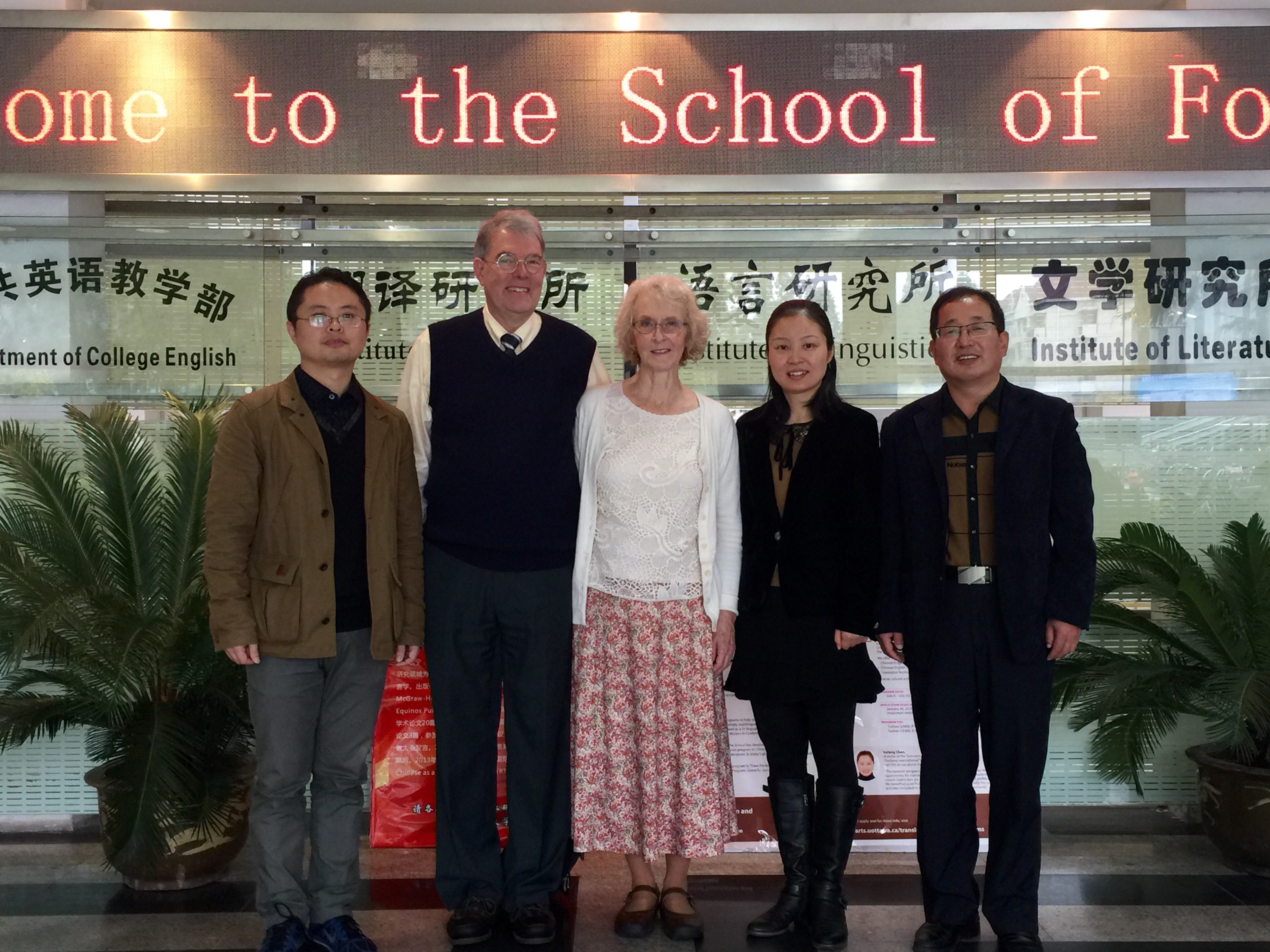 2015年11月18日上午,Brigham YoungUniversity中国教师项目主任JamesD. Ballentine和GeneilG. Ballentine夫妇来访同济大学外国语学院,与外国语学院副院长董、英语系主持工作副主任魏耀章及公共英语教学部副主任李兴文,就学院聘任的该项目派出外教的教学情况,将来选派与接受外教的各方面情况、细节做了交流和讨论,以更好地适应我院学生的需求,进一步提升教学效果,实现教学目的。