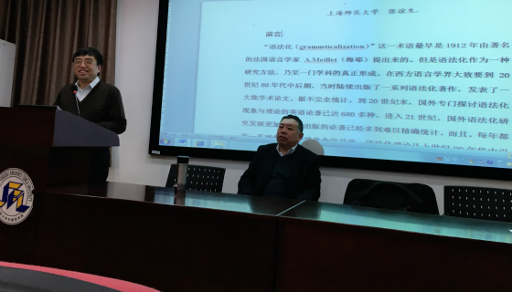 张教授首先对当前汉语语法化的研究现状作了简要介绍,然后结合其本人研究,对语篇交际的语用因素、人类认知的心理因素、语言接触的社会因素、语言互动的内部因素等四方面的语法化动因进行讲解。进而对相邻句位、泛化、隐喻、类推、和谐、语境吸收、分界改变、重新分析、竞争更新、叠加强化10种语法化机制加以介绍。讲座中张教授凭借幽默的语言吸引了同学们的注意;引经据典,凭借丰富的例子开阔了同学们的视野。