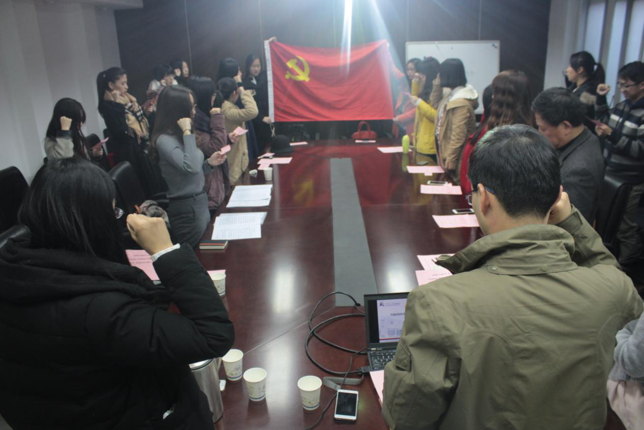 最后,新入党同学进行了入党宣誓,其他党员同学重温了入党誓词,党支部大会圆满结束。