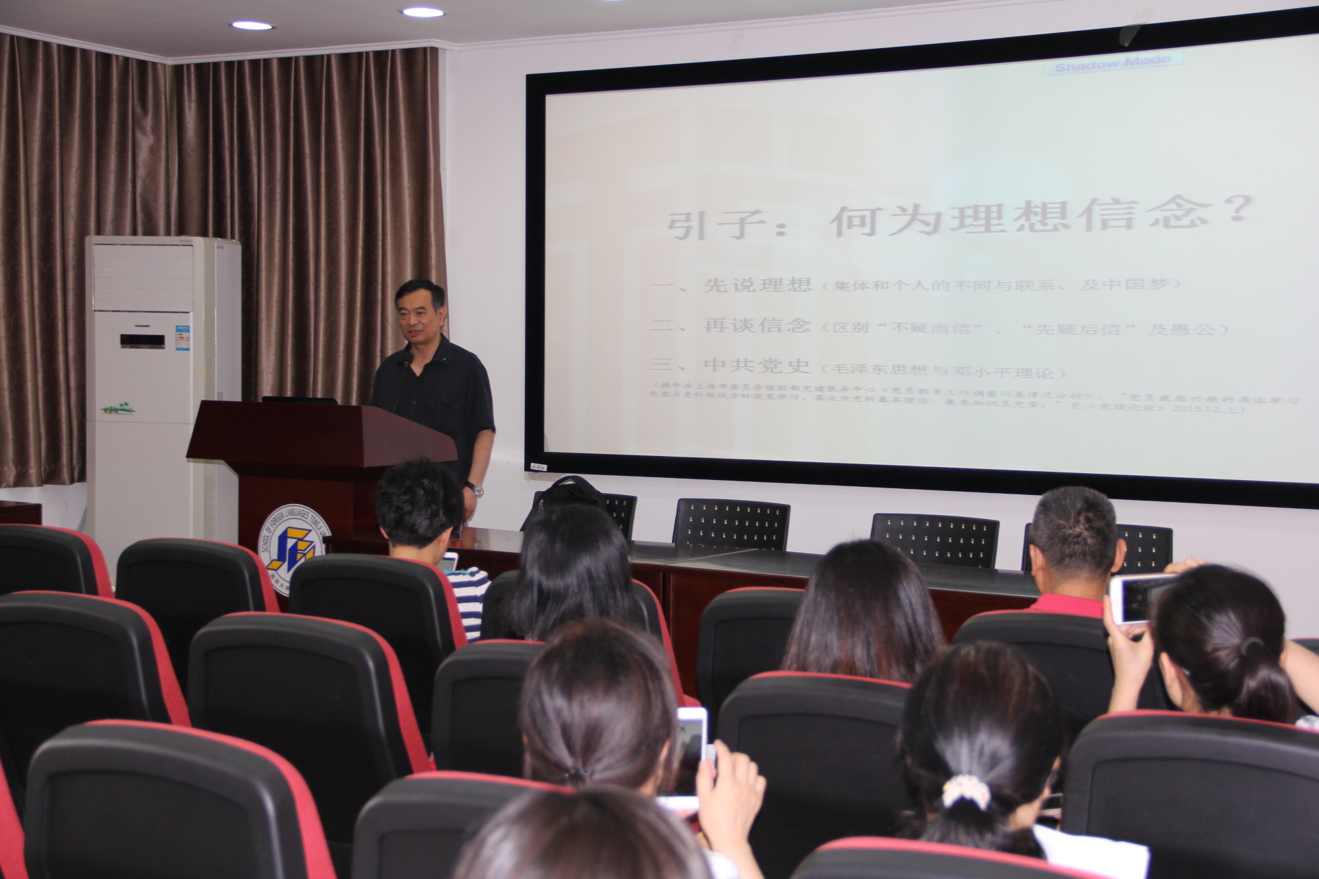 2016年6月21日下午,外国语学院邀请学校“两学一做”讲师团成员、马克思主义学院党委书记张劲教授给全体师生党员上党课。党课题目是“学习党史坚定信念”。