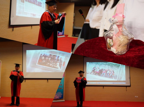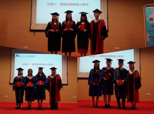 而后,学院领导为班级联络人颁发聘书,期待毕业生们日后能够与母校保持联系。接着,各系开启了尘封四年的心愿瓶,导师们念出2016届本科生同学们在开学的第一堂班会课上写下的纯真心愿,场面温馨动人。最后,在毕业生手拉着手合唱《朋友》声中,结束了外国语学院2016届毕业典礼。