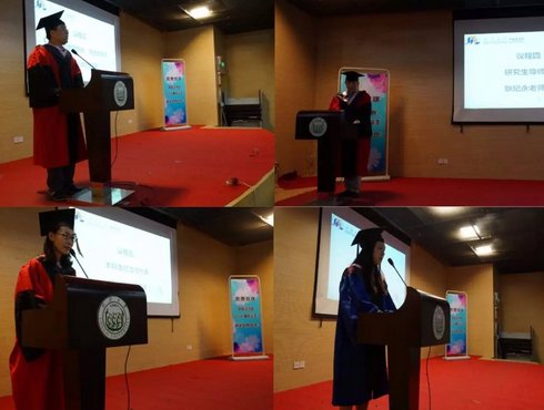 研究生导师代表耿纪永老师在发言中向毕业生们提出 “不要抛弃学问、不要放弃读书、不要放弃思考”的真诚的希望。本科生班主任代表时晓阳老师鼓励同学们“不要害怕冒险和犯错”,希望同学们“认真工作、亦认真生活,做自己尊重的人”。