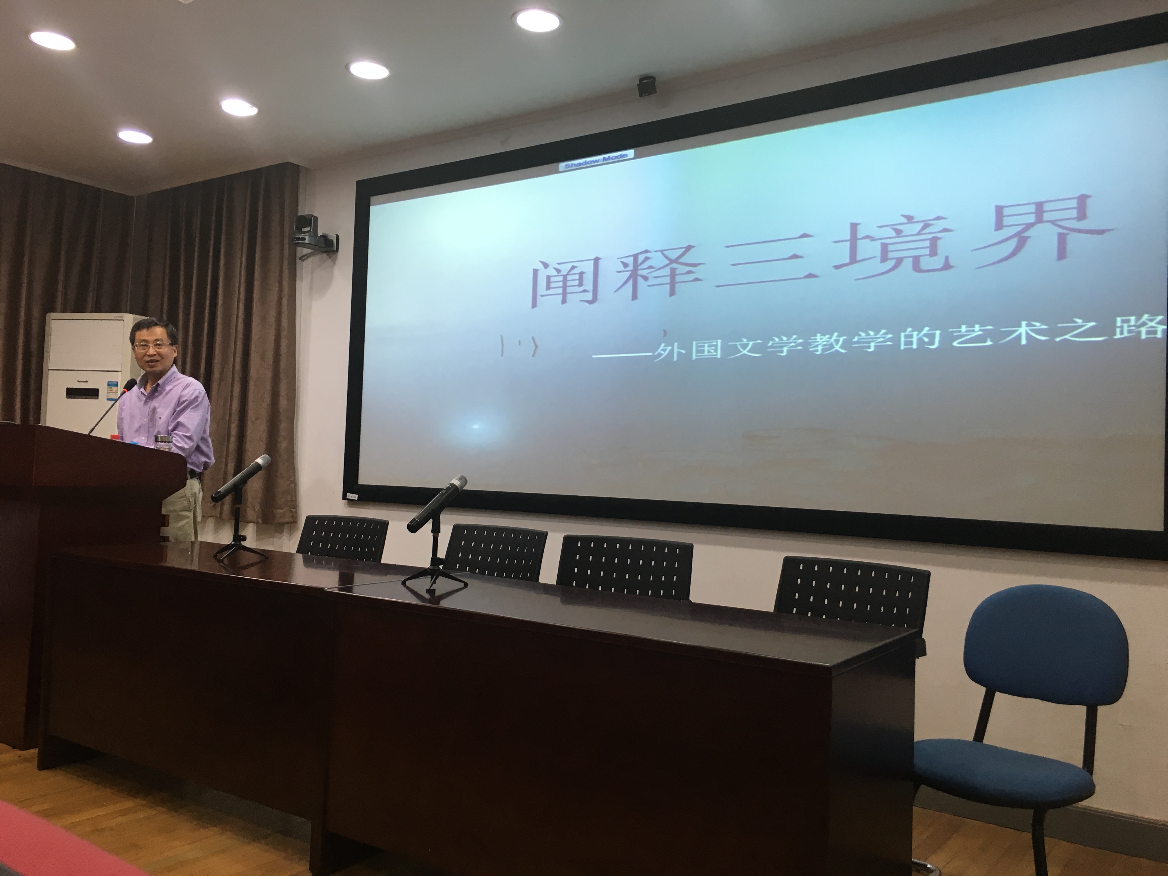 2016年10月13日下午,我院邀请杭州师范大学外国语学院学术委员会主任、浙江省外文学会会长、中国外国文学学会英国文学分会副会长殷企平教授,为外国语学院师生带来了一场名为“阐释三境界――外国文学教学的艺术之路”的讲座,张德禄教授主持了本次讲座。