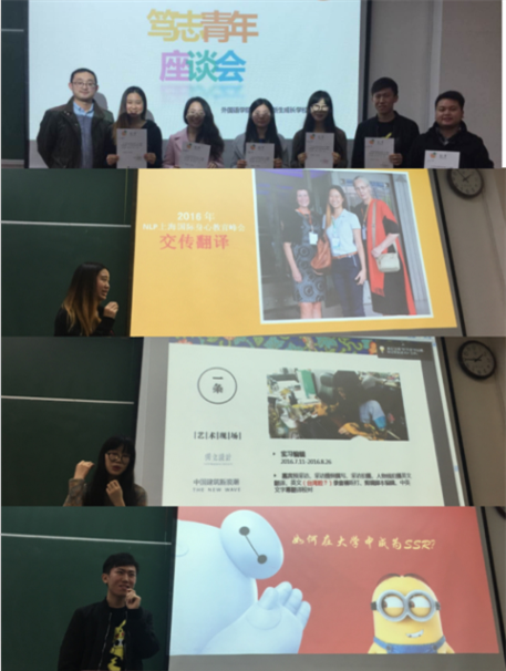 12月13日,外国语学院新生成长学校依托形势与政策课实践教学平台,面对大一新生们举办“笃志青年座谈会”,邀请英日德三个专业的6名“笃志代言人”为新生回顾心路历程、分享成功故事。参加本次活动的老师有校勤管办段鹏岳老师,学院学工办王小莉、张绣宇老师。听了超级学霸、翻译高手、十大冠军、offer达人们的故事,新生都表示感触颇深。