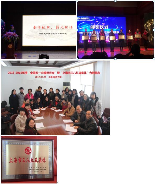 喜 报 2017年3月6日下午,中国教育工会上海市委员会、上海市教育系统妇女工作委员会在上海音乐学院贺绿汀音乐厅隆重举行了三八国际劳动妇女节107周年暨先进表彰大会。德语系本科教研室荣获“全国五一巾帼标兵岗”和“上海市三八红旗集体”的光荣称号,赵劲教授代表获奖集体发言。同济德语专业走过了光辉历程,全体教师尤其是女教师们在教书育人方面取得了可喜可贺的成就。德语系女同胞们将再接再厉,在平凡的岗位上奉献自己的一份力量。
