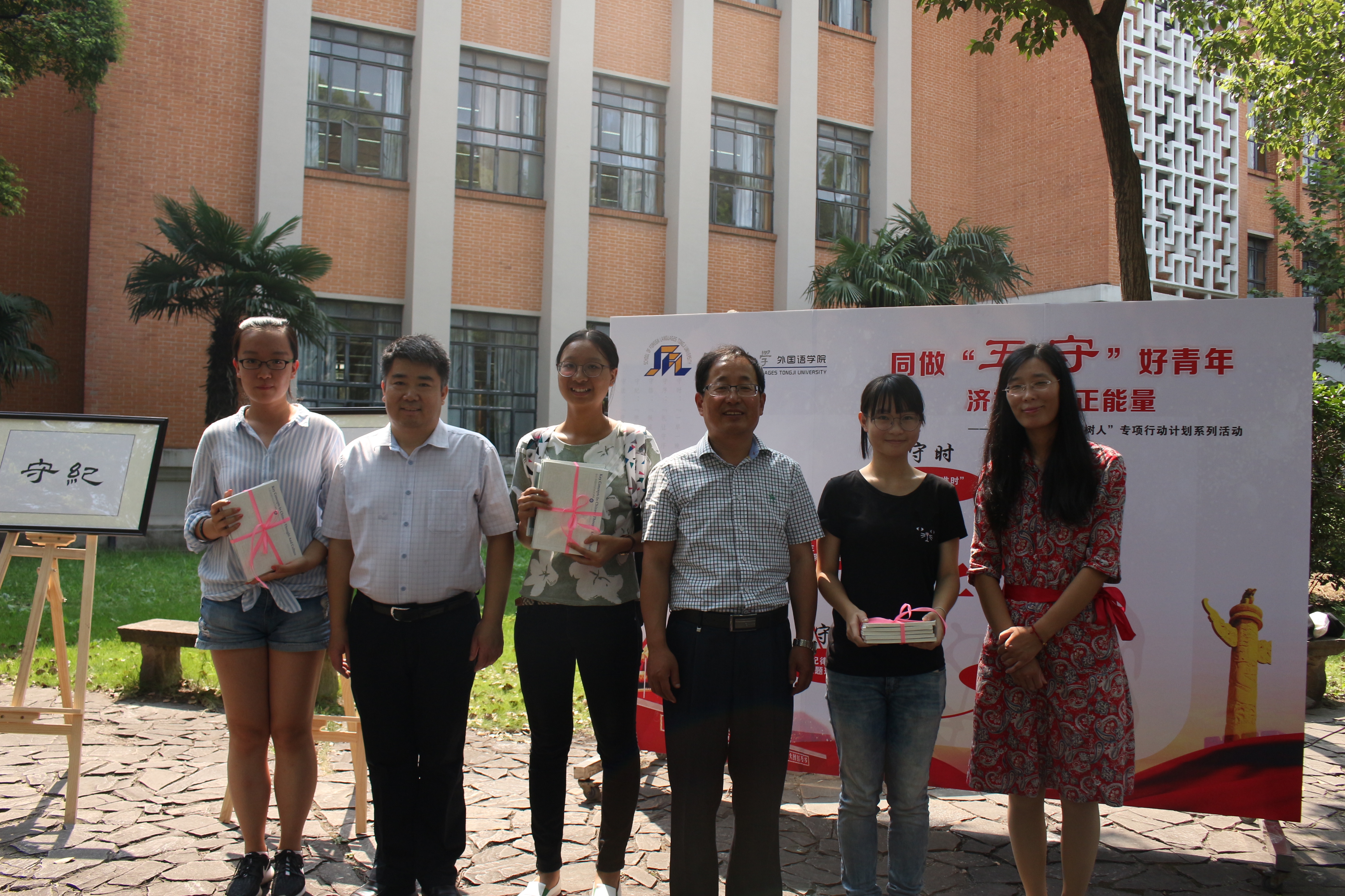 同济大学党委副书记徐建平、同济大学党委学生工作部、研究生工作部部长刘润、外国语学院院长吴?、外国语学院党委副书记纪委书记魏铀原、外国语学院副院长董?为外国语学院“五守”系列活动揭牌。紧接着,外国语学院为学生赠予外语教学与研究出版社出版的《中华思想文化术语》,鼓励学生学好专业知识、提升文化自信、讲好中国故事。同济大学留学生办公室主任禹昱、外国语学院英语系系主任魏耀章、外国语学院学工办主任王小莉老师为学生代表赠书。