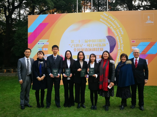 2017年12月10日,第23届中国日报社“21世纪·可口可乐杯”全国英语演讲比赛上海总决赛成功举办。同济大学英语系董劼铭同学获一等奖,人文学院朱新玥同学获一等奖,英语系徐肖磊同学获二等奖,英语系刘卓娅获三等奖;英语系副教授何继红、副系主任黄立鹤获优秀指导教师奖;英语系获最佳组织奖。根据排名与竞赛规则,朱新玥同学明年将代表同济大学参加全国总决赛。