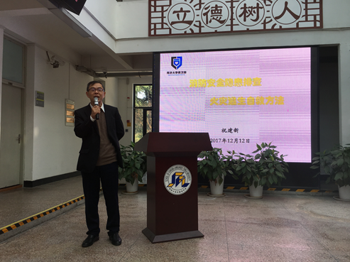预防为主,防消结合,为进一步加强外国语学院师生消防安全意识,全力普及消防安全知识,推进学院消防安全宣传工作,2017年12月12日,外国语学院邀请同济大学保卫处消防科副科长祝建斌老师在同文楼一楼大厅,为外国语学院新生开展消防安全培训讲座。