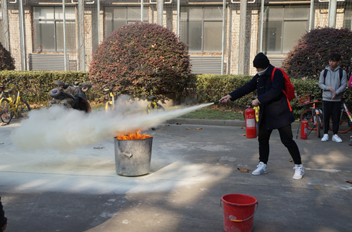 培训开始前,外国语学院党委副书记魏铀原老师给大家做了简短的发言,叮嘱学生进入冬季,一定注意用电安全。稍后,祝建斌老师结合近年来发生的火灾案例,以视频、图片及文字的形式生动地阐述了消防安全知识的重要性, 同时从“防火”、“灭火”、“逃生”、“自救”四个方面详细 介绍了火灾的形成过程、 自救逃生的方法以及灭火器的种类和操作方法等一系列消防安全知识。讲座深入浅出,引用案例发人深省,外国语学院师生进一步提升了消防意识,掌握了基本消防知识和灭火技能。