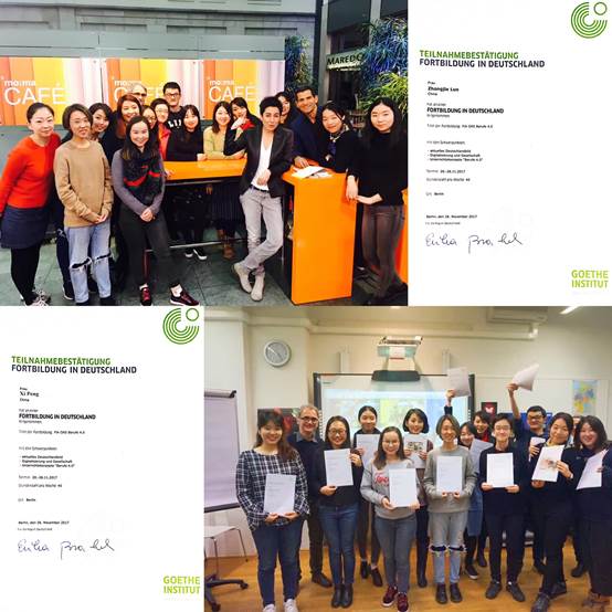 本次进修活动为期6天,主题是“职业4.0”。柏林歌德学院围绕“职业4.0”这一主题,让获奖者探讨对这一概念的认识,组织一系列相关的文化活动,比如参观科技博物馆、游戏博物馆、通讯博物馆,邀请传媒教育学专家作报告、参与德国第二电视台晨间直播节目的录制、参观国会大厦、观看话剧等。两位学生均感获益匪浅,对外国语学院和德语系老师的指导和帮助深表感谢。