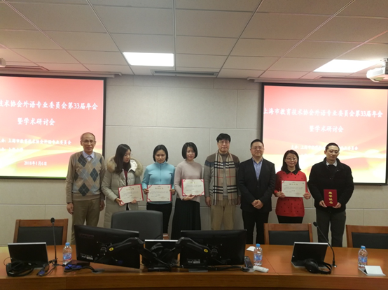 2018年1月6日,第三十三届上海教育技术协会外语专业委员会年会暨学术研讨会在上海大学举行。来自上外、同济、复旦、交大、华师大及上海市其他高校及各教育技术厂商代表80余人参加了此次会议,会上表彰了2017年度优秀论文及优秀多媒体课件,我院多位教师提交论文、课件积极参与了评选,最终王轶老师的课件《城市导向》和宫华萍老师的论文《基于在线学习分析的多模态语料库构建》从参评的11个课件和38篇论文中脱颖而出,分别荣获优秀课件一等见和优秀论文三等奖,为我院争得了荣誉。