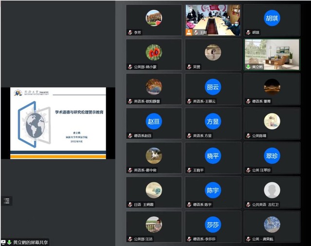 党委副书记黄立鹤向全院教职工做了有关学术道德与研究伦理的警示教育宣讲。他以学术不端的具体案例为切入点,从如何避免学术研究中的学术道德问题、如何遵守学术道德与研究规范、什么是人文社科领域的研究伦理等三个方面展开警示教育。他强调,同济师生应坚守学术道德和科研伦理,勇攀学术高峰,产出一流的科研成果。