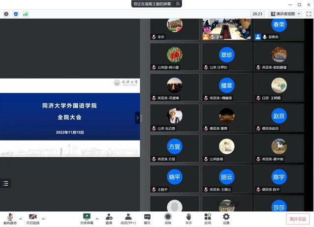 11月15日下午,外国语学院以线上线下结合的方式召开学习宣传贯彻党的二十大精神再部署会。学院党政领导班子、全体教职工出席。会议由学院党委书记郑春荣主持。