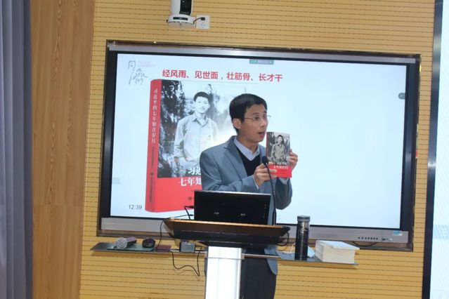 “在经风雨、见世面中长才干、壮筋骨,练就担当作为的硬脊梁、铁肩膀、真本事,敢字为先、干字当头,勇于担当、善于作为”是习近平总书记对新时代青年人的希冀和要求。吴利瑞向同学们推荐了《习近平的七年知青岁月》一书,带领同学们回顾了习近平总书记知青时期的艰苦生活和成长历程,习近平总书记对党一以贯之的忠诚热爱,富民强国的抱负和担当,一心为民的深厚情怀,宽厚敦实的优良品质使大家深受感动。吴利瑞鼓励同学们在日常生活中展现作为、彰显价值,涵养知难而进、逆流而上的气概,磨砺遇强更强、愈挫愈勇的坚韧,争做“勇于担当有为、敢于攻坚克难”的时代新人。
