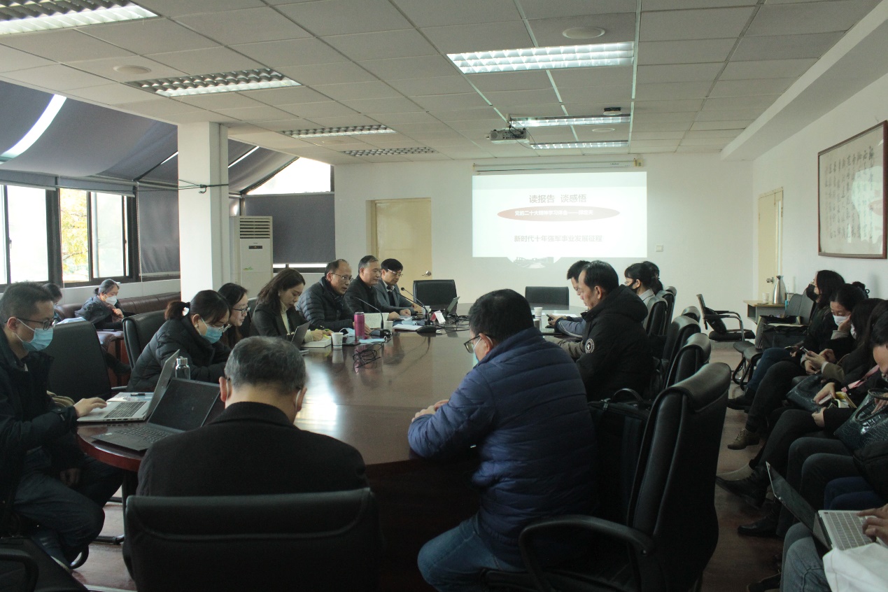 郭定夫同志以“新时代十年强军事业发展征程”为题,围绕学习贯彻党的二十大精神与国防军队建设等内容授课。他以生动的实例,围绕党的二十大报告中“如期实现建军一百年奋斗目标,加快把人民军队建成世界一流军队“的建设目标进行了阐释,说明了国防军队建设对于全面提高捍卫国家主权、安全、发展利益战略能力的支撑作用。强调党员领导干部要强化国防观念、贯彻总体国家安全观。党课之后,他与教师们就俄乌局势及国别区域研究等问题进行了交流。
