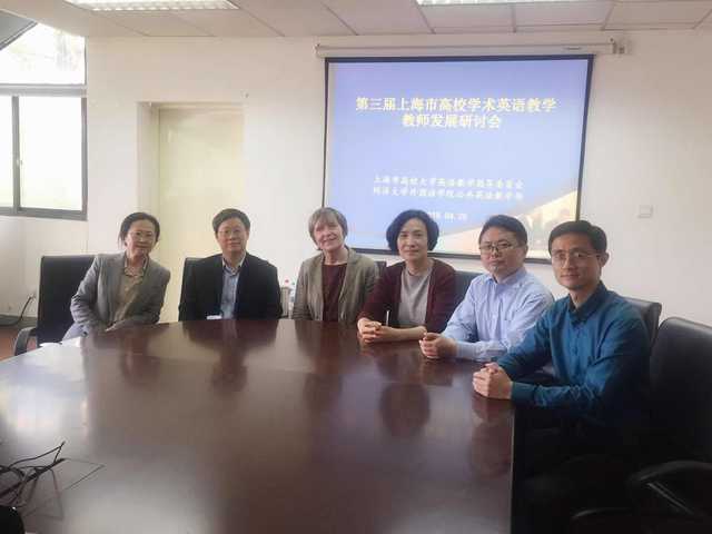 2018年4月20日下午,第三届上海市高校学术英语教学教师发展研讨会在同济大学四平路校区同文楼214会议室召开。上海市大学英语教学指导委员会主任蔡基刚教授等教指委领导、外国语学院副院长宋缨,院长助理朱锡明,公英部副主任钱杨、李兴文,以及来自复旦大学、华东师范大学、华东政法大学等16所高校的教师代表和公英部教师代表共80多人参加了会议。会议特邀英国布里斯托大学英语语言中心主任、英国学术英语教师协会(BALEAP)会长Maxine Gillway教授做了题为Academic Discourse and Disciplines和Catering for Diverse Needs的两场专题讲座。Gillway教授首先详细阐述了学术英语(EAP)教学中的一些重要概念和原则,介绍了如何以目标读者(audience)和写作目的(purpose)为指针、从内容(content)、语言(language)和结构(organization)三个方面来评析学生的学术英语写作,并以丰富的教学实例现场展示了如何在摸清学生需求的基础上提供有针对性的学术英语写作指导和修改意见。在Gillway教授的发言结束后,与会教师代表积极提问讨论,会场气氛十分热烈。