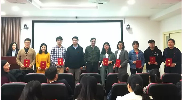 同时,为学深悟透,将十九大精神入脑、入心、入行,外国语学院依托“汇文党建论坛”,发挥党员自身示范引领作用,利用朋辈教育优势,遴选优秀大学生党员组成“汇说十九大学生宣讲团“。徐伟铖为八位宣讲团成员颁发了讲师聘书。在此次活动中,宣讲团成员结合日常生活点滴事迹,与大一学生分享十九大精神的学习心得,分享大学的成长故事,号召优秀青年学生积极向党组织靠拢。