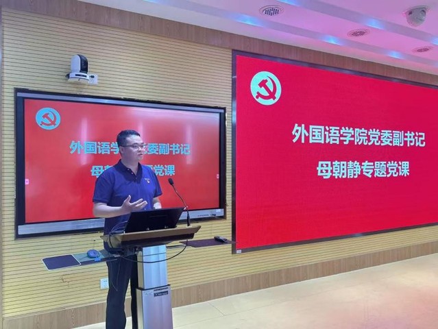 母朝静副书记以“听党话、跟党走,到祖国和人民需要的地方建功立业”为主题讲授专题党课,从四个实践维度为党员划定行动指南。一是讲政治铸理想,始终牢记党员身份,将对党忠诚作为终身必修课,更要把个人理想融入国家和民族发展大局,以实际行动带动身边人;二是做表率亮身份,聚焦专业使命,发挥语言优势,在国际舞台讲好中国故事,争当文化传播先锋;三是重实干善作为,磨练知行合一的本事,要在基层历练中锤炼“语通世界、融汇中外”的真本领;四是敢担当闯难关,以“功成必定有我”的决心,为强国建设贡献力量。他寄语毕业生党员们,要以坚定的信心和顽强的毅力,敢于担当、积极作为,为实现中华民族伟大复兴贡献青春力量,不负时代、不负党组织的培养和期望。