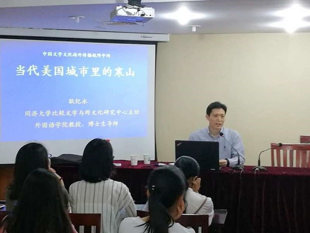 2018年5月28日下午,同济大学比较文学与跨文化研究中心主任、外国语学院博士生导师耿纪永教授受邀赴盐城师范学院做了题为“当代美国城市里的寒山”的学术报告。