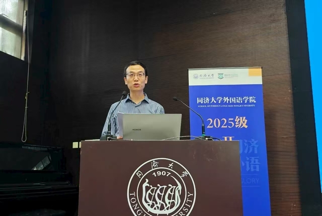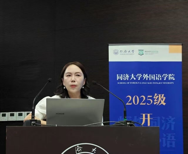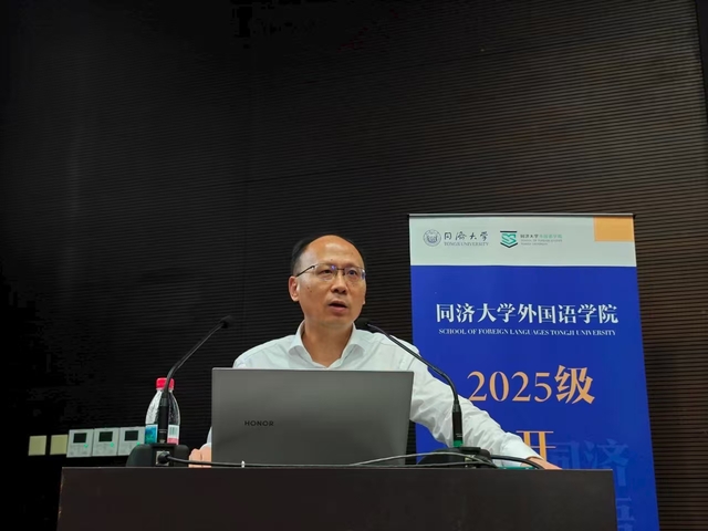 吴贇为新生作学科前沿专题报告。在报告中,她回顾了同济外语学科百年发展的辉煌历程并总结了“十四五”时期外国语学院所取得的一系列标志性成果;阐释了学院对外语学科“不忘‘本来’,吸收‘外来’,面向‘未来’”转型理念的辩证思考;介绍了外国语学院在语言学、外国文学等基础研究和国际传播、国别区域、国家安全、健康中国等应用研究方面所做的学科发展规划。她指出,新时代的同济外语人要瞄准“语言能力、数智素养、世界知识”三位一体的成长坐标,对标学校“数智化、融合化、绿色化”的发展布局,重视AI赋能语言生态,加强科教融合、产教融汇,推动学科交叉,在“讲好中国故事,推动文明互鉴”方面做出更大贡献。