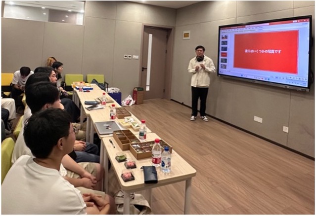 同济大学日语系大一新生以“我所了解的日本”为题,从音乐、影视动漫、饮食文化、茶道艺术以及旅行体验等角度,分享了他们眼中的日本印象。尽管刚踏入大学校门,同学们已展现出对日语学习和跨文化交流的浓厚兴趣。在准备过程中,灵活运用AI工具,制作了精美的中日双语PPT,在汇报中竭尽全力运用已掌握的日语传递信息。真诚热情的讲述,引发了在场中日学子的强烈共鸣,在对话中绽放出青春的热忱与活力。
