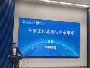 沈骑副院长接着详细阐释了外事工作全流程与关键注意事项,涵盖因公出国审批、专家来华项目、国际会议申办及研究生会议基金申请资助等事项。他特别强调因公出国管理的纪律要求,同时鼓励教师积极申报各类外国专家项目。