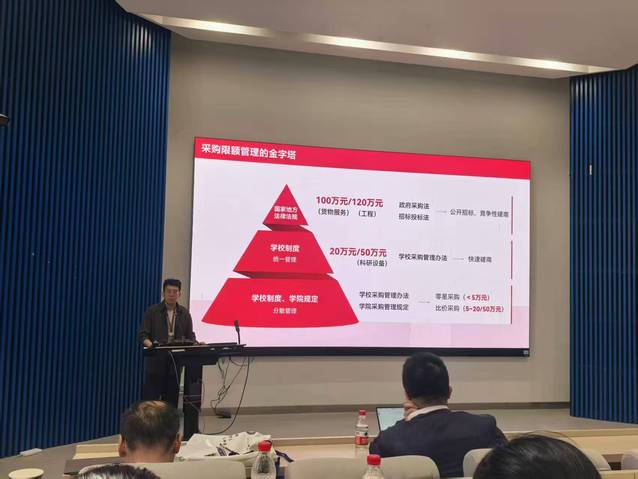 为提升学院法制教育覆盖面、规范采购行为、提高工作效率,学院邀请采招办赵蕴佳老师作采购政策专题宣讲。赵蕴佳从采购管理制度概述、学院采购工作指引、采购工作风险提示及信息化赋能手段四个方面进行系统介绍,并结合外国语学院采购偏好,重点剖析零星采购中的潜在风险。